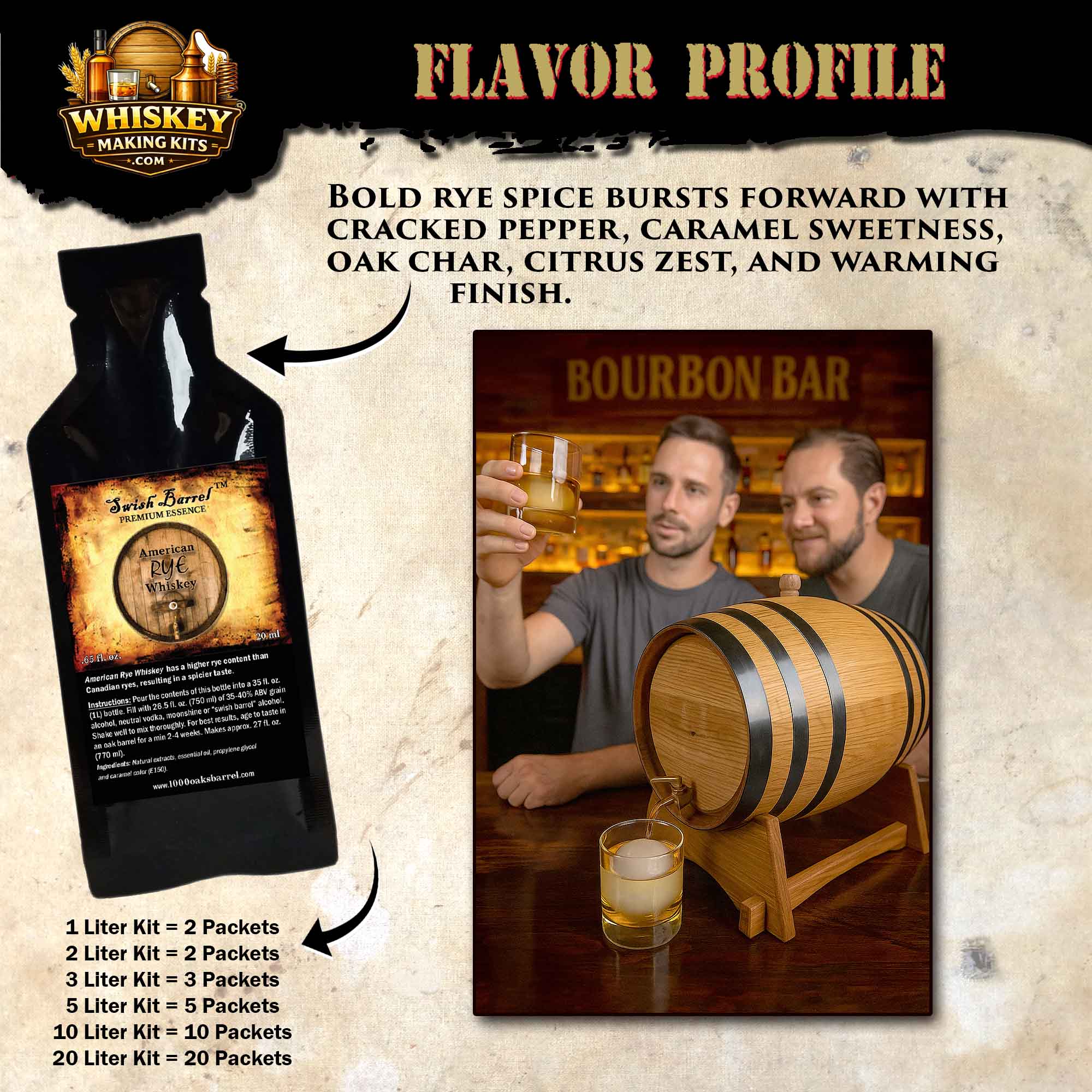 Experience the bold, spicy character of true American rye with the American Rye Whiskey Making Kit, a complete home whiskey aging and infusion system designed for craft spirit enthusiasts, bourbon lovers, and serious rye fans.
